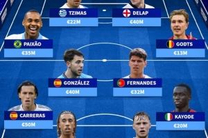 中场:派尚(巴西,3500万)、尼科·冈萨雷斯(西班牙,4000万)、马特乌斯·费尔南德斯(葡萄牙,3200万)、米卡·霍茨(比利时,1300万)